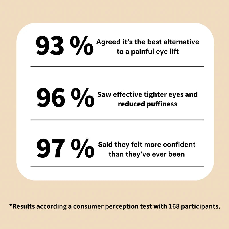 The result is and lasts up to 8 hours. In addition, from now on you can enjoy the comfort of being able to lift give yourself an eye lift at any time, comfortably and easily from home.