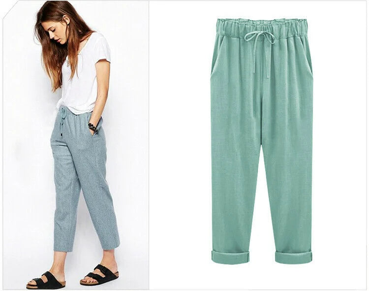 Plus Size Solid Color Elastic Waist Loose Cropped Trousers