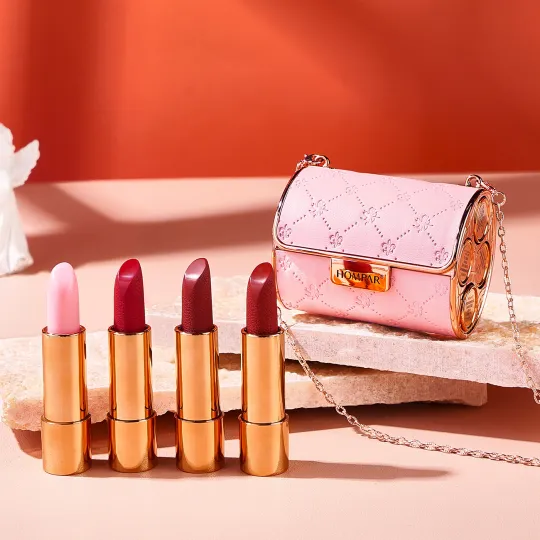 Light up your beautiful lips with our matte lipstick set in a charming chain bag!