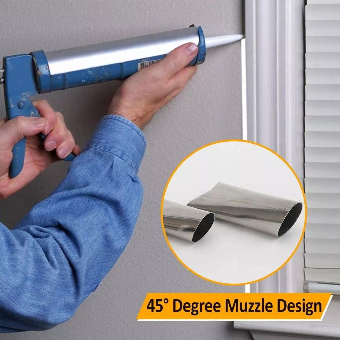 It is designed with a 45-DEGREE MUZZLE that can soothe and fill caulk jobs easily, without messy and uneven finishes, give your home a new look.