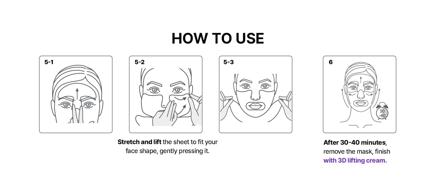 Customized Fit for Superior Results – Tailored to your facial contours, the mask combines high-elasticity twist threads and hydrogel for a snug fit that delivers immediate lifting and firming to the jawline, forehead, and mid-face, reshaping facial contours while moisturizing the skin.