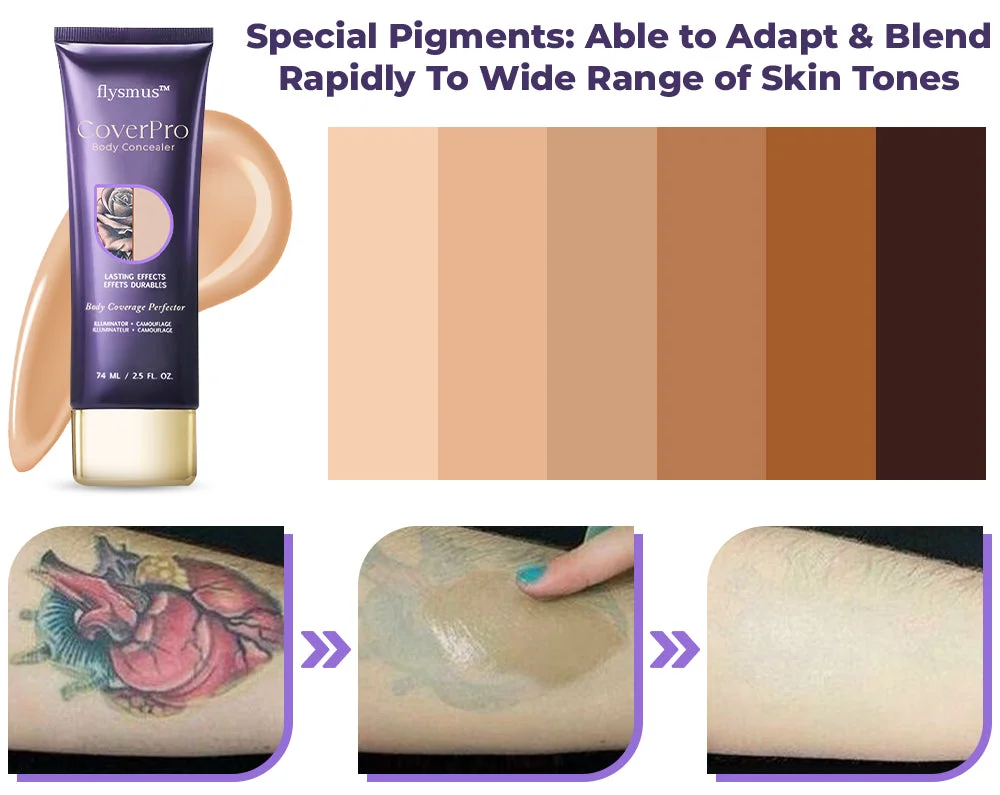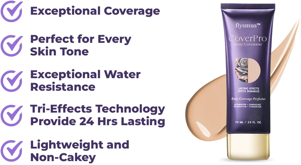 "I had this tattoo from my teenage years that I deeply regretted and was worried it might affect my upcoming teacher interview. Fortunately, a friend recommended CoverPro Body Concealer, and it worked wonders! Even with a different skin tone, it seamlessly hide my tattoo without looking like I was wearing concealer. Thanks to this product, I felt confident and aced my interview, and now I can't wait to get that tattoo removed!"