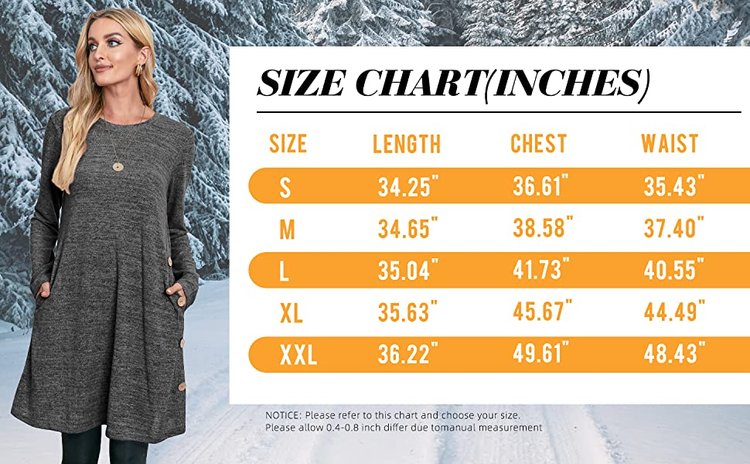 NOTICE: Please refer to this chart and choose your size. Please allow 0.4-0.8 inchdiffer due to manual measurement