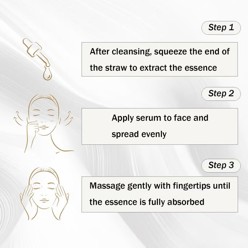 - Step 3: Take a few drops of the serum essence onto your fingertips. Gently rub your fingertips together to distribute the product evenly.