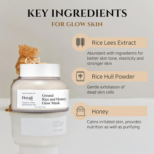 Rice hull powder, Honey: gently remove dead skin cells and impurities from the skin, while honey helps to moisturize the skin and relieve troubles. By using mild natural ingredients as they are, it helps create healthier skin texture and tone.