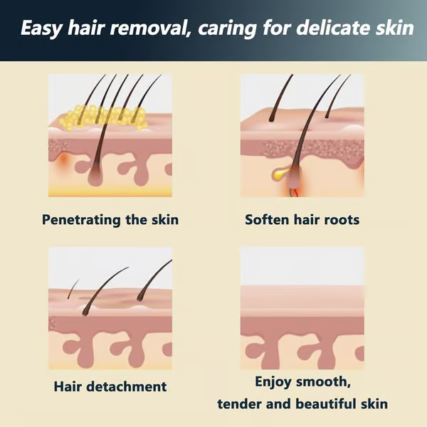 Designed for intimate and private areas, this hair removal cream works deeply to remove hair closer to the roots, ensuring long-lasting smoothness 🕶️. Feel confident and refreshed for longer periods without worrying about stubble or irritation!