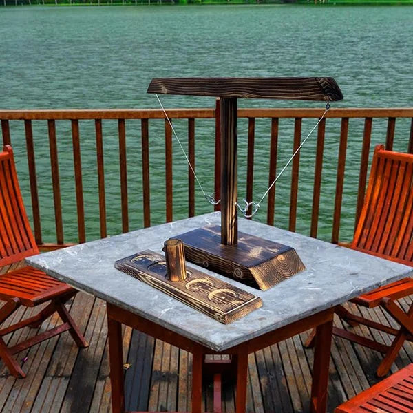 ♛ 【HOW TO PLAY】: Place wooden cup in the center circle, Take rings and go! Each time you land the hook, move the wooden cup 1 space towards your opponent. Player wins when the wooden cup moves off the end of the ladder. Raise the Stakes, Play every game Style by agreeing on a wager with your competitor before the game!