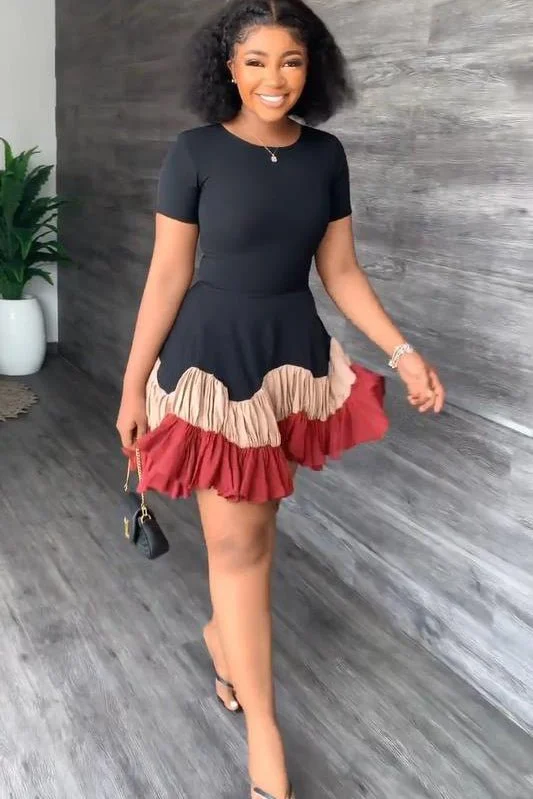 Summer Short Sleeve Colorblock Ruffle Mini Dresses