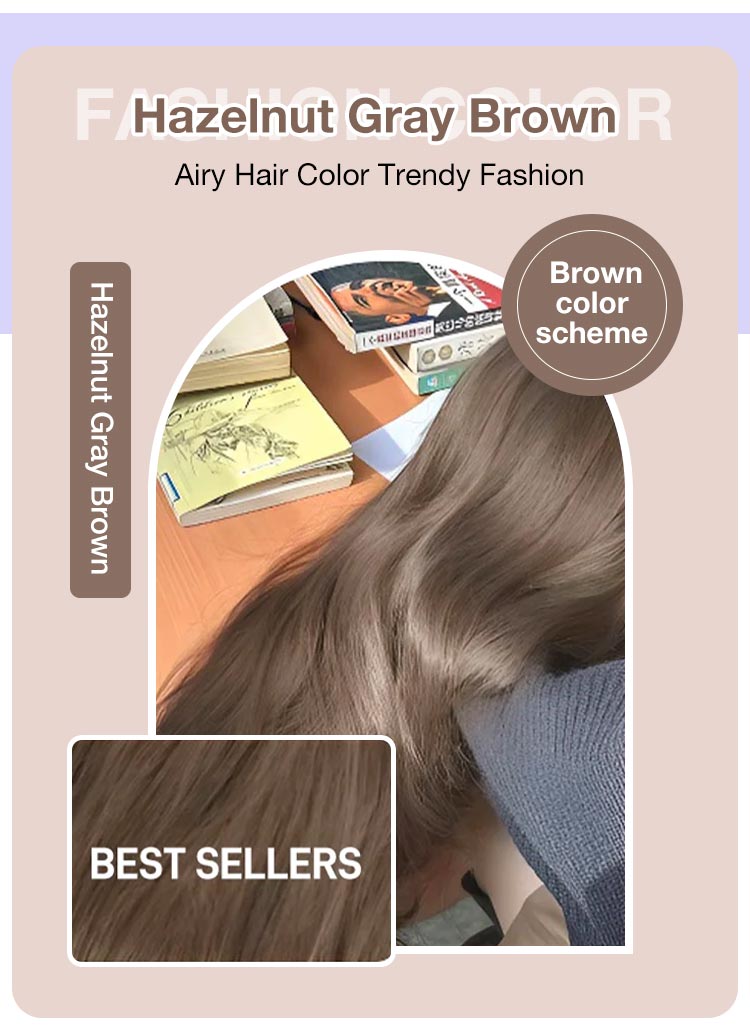 2024 Trendy Hair Color Hazelnut Ash Brown Non-Bleaching Dye Cream