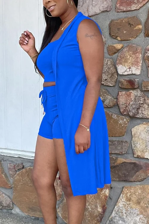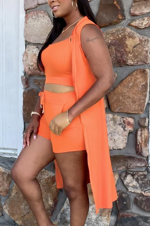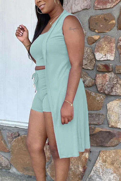 Features: Crop Tank Top, Tank Top Cardigan, Ribbed Design, Stretch High Waist Drawstring Shorts, Long Cardigan with Shorts Set, Slim Fit, Solid Color, Summer 3-Piece Set, Casual 3-Piece Pajama Set Women's 3-Piece Loungewear three piece shorts suit cardigan.