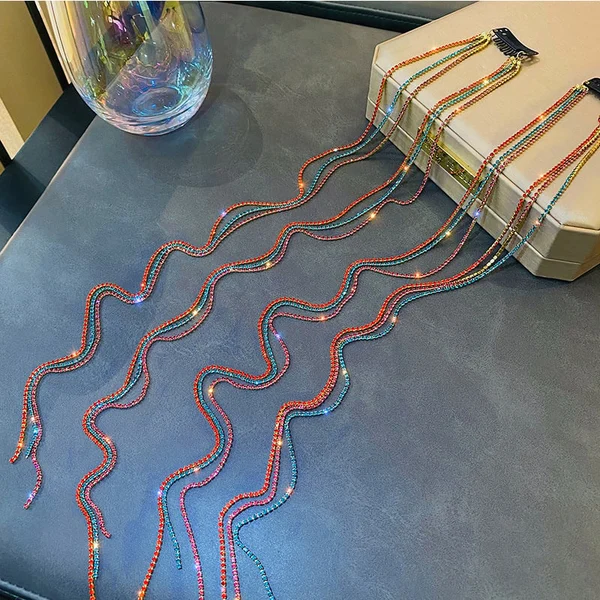 Coloured Rhinestone Chain Tassel Hair Clips Headband for Bride