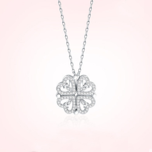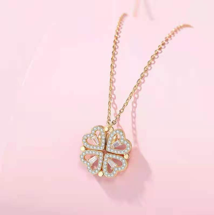 ♥ 【1 necklace with 4 uses】 Designed with folding and extendable clover leaves with 4 hearts, perfect pendant necklace for lady who has difficulty choosing.