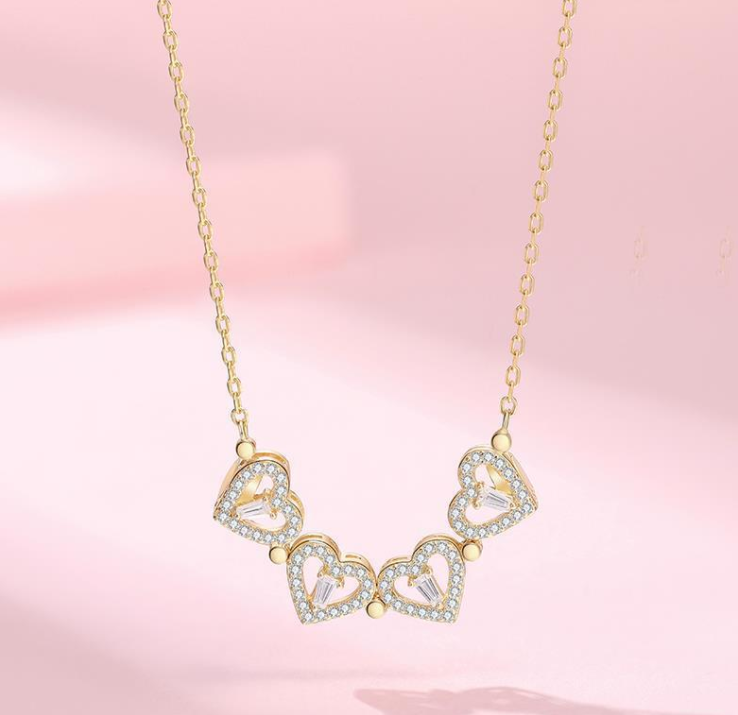💕The 4 hearts pendant necklace is plated in 925 sterling silver, made with crystals, sparkling four leaf clover necklace, comes with a small chain (16.0 in length + 2.0 in extension).