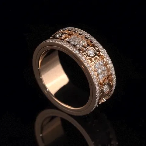 • The Gear Ring is made from high-quality copper-gold alloy. It features micro-precision gears that turn when the outer rims are spun.
