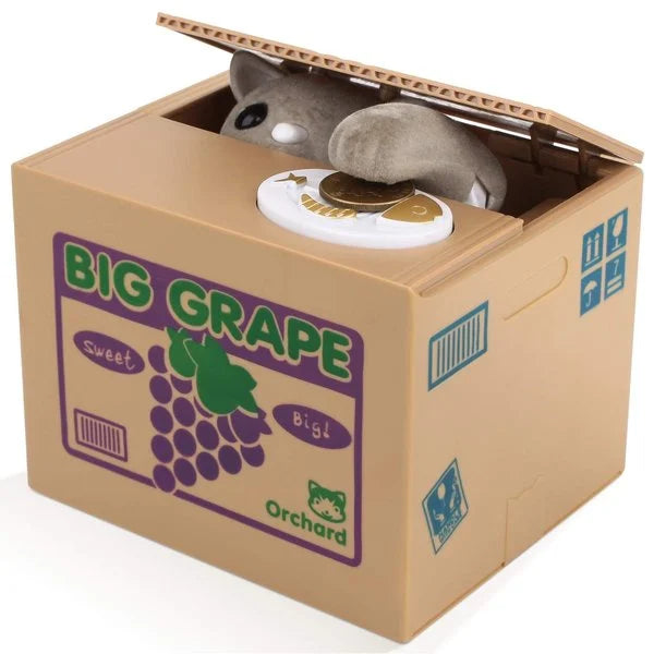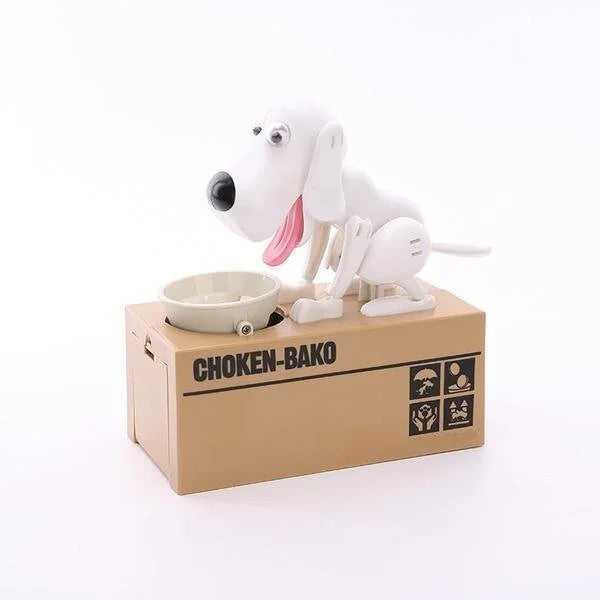 Drop some coins into his dish and he immediately goes for it, with a dog-like enthusiasm that you'll love! The coins are stored inside the box after they "eats" them up, making it a great way to promote savings for all ages!