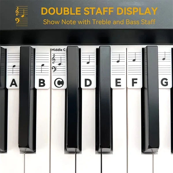 ð€As you know, learning the piano is a process, but we can still use tools to make the process faster and easier. The Removable Piano Keyboard Note Labels present the key notes in a visual way, helping you to start playing and practicing immediately when you are not yet familiar with the keys.