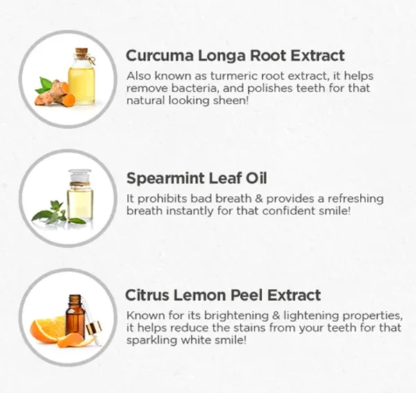 • Spearmint Leaf Oil: It prohibits bad breath & provides a refreshing breath instantly for that confident smile!