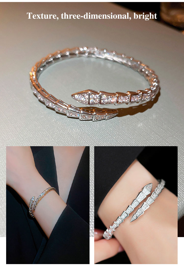 Zircon Snake Shaped Open Bracelet