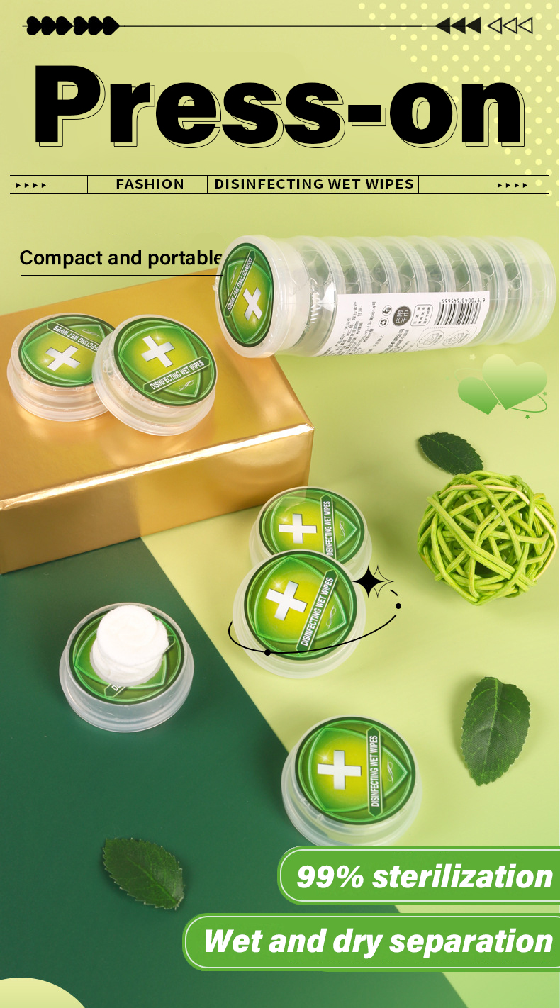 Press-on disinfectant wipes