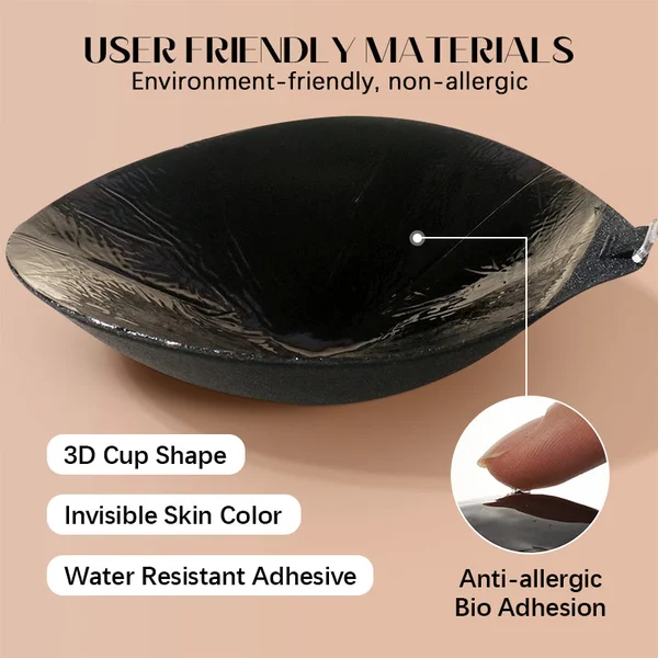 The invisible sticky push-up bra adopts cloth cup technology, which contains skin-friendly silicone, and the good stickiness will not cause any pain to the skin. The high-strength adhesive of the backless adhesive back bra keeps your breasts in a firm and comfortable position without worrying about falling off.
