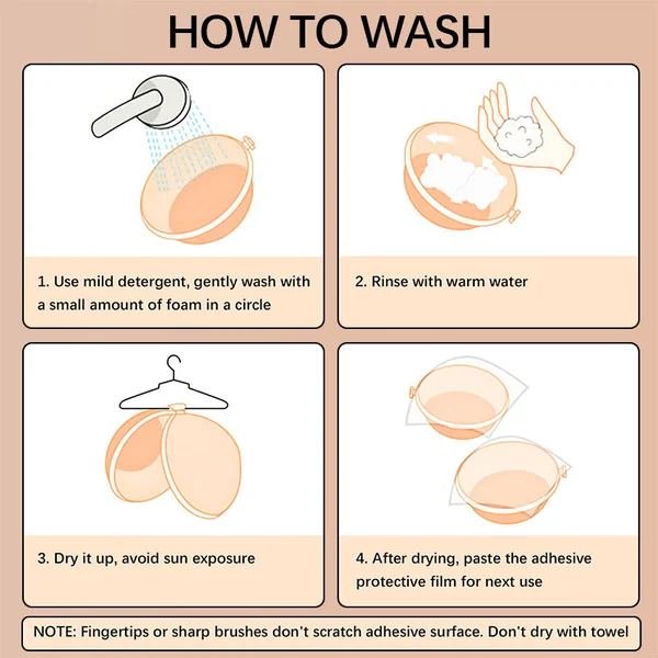 This sticky bra can be reusable for many times. Simply wet the adhesive surface with warm water and then air dry. Then it will still keep the adhesive gels ready for your next use.