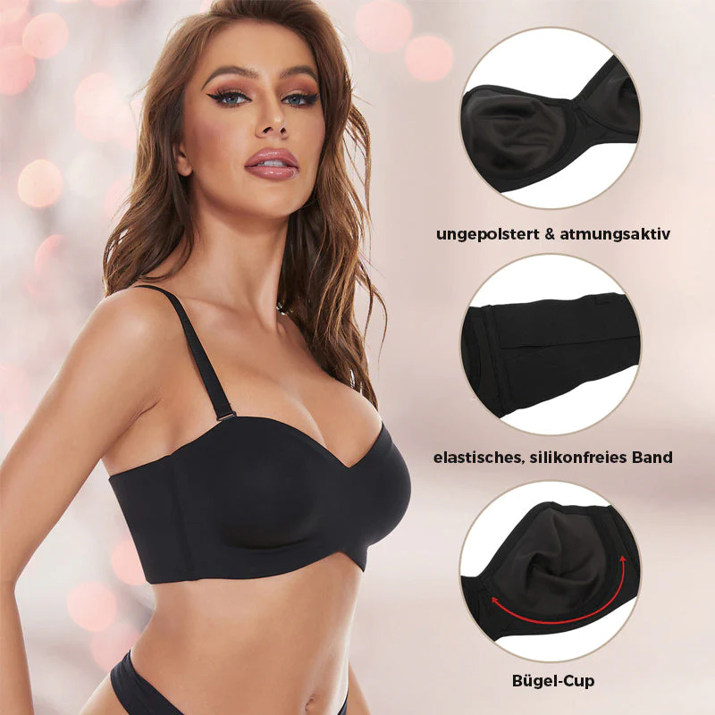 It holds and lifts your boobs at the same time, keeping all the skin in place! A supportive, strapless, non-wired bra that actually stays in place!