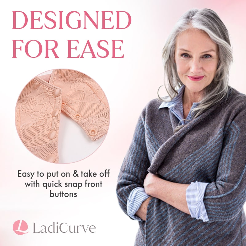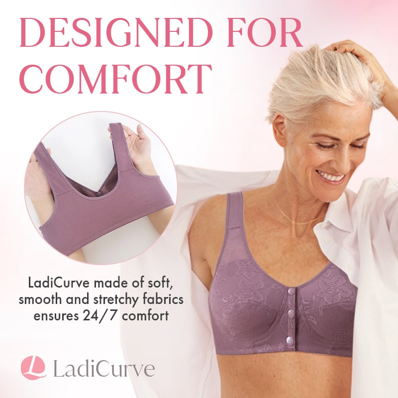 LadiCurve is made of soft and smooth fabrics to optimize moisture-wicking and keep you comfortable wearing all day long. Put on and take off you bra with ease thanks to LadiCurve's quick snap front button design. You don't have to struggle with your bra's back hook anymore.