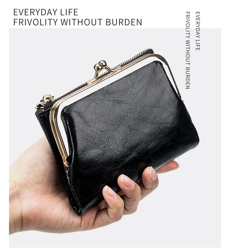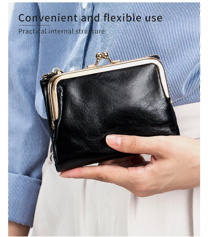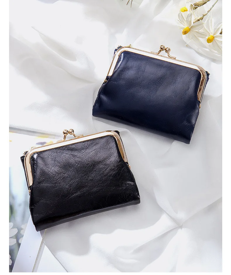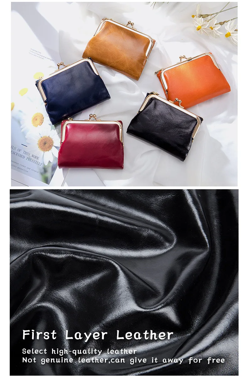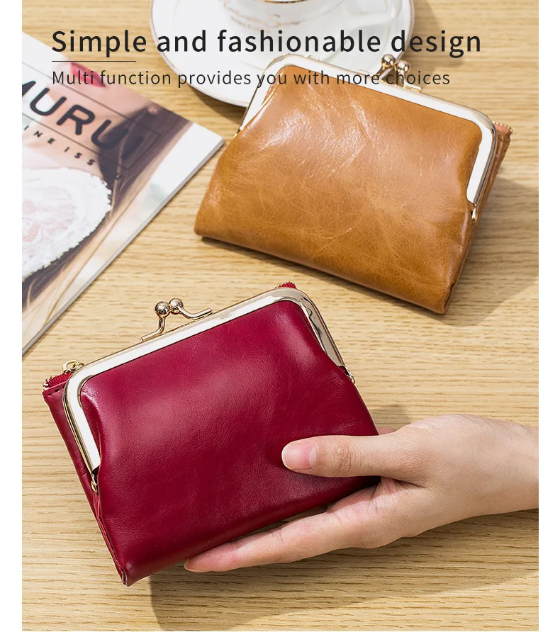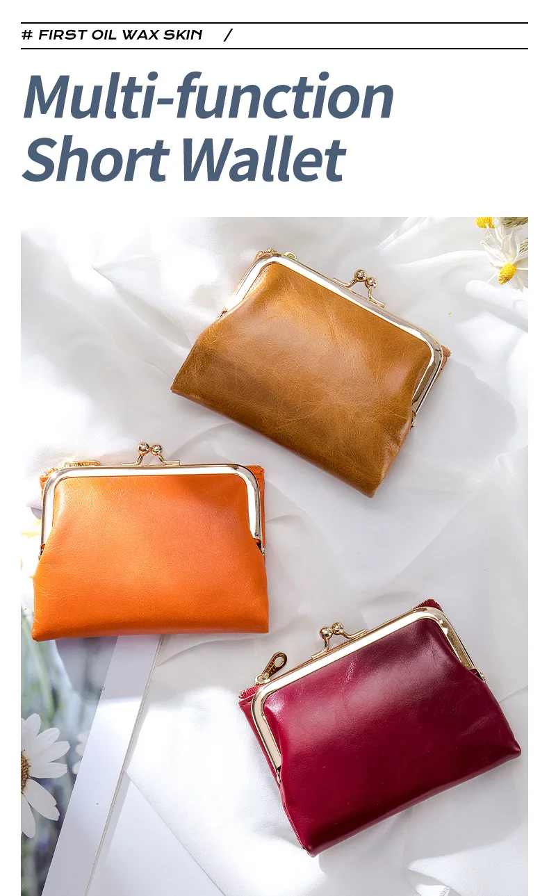 Cowhide Retro Short Wallet Women's Multifunctional Clip Coin Purse