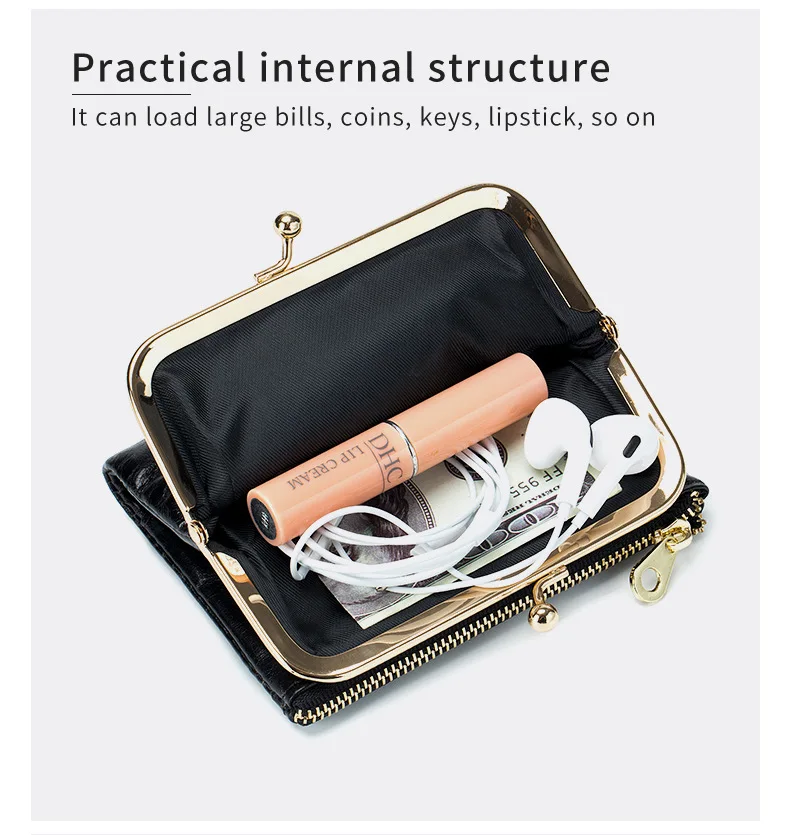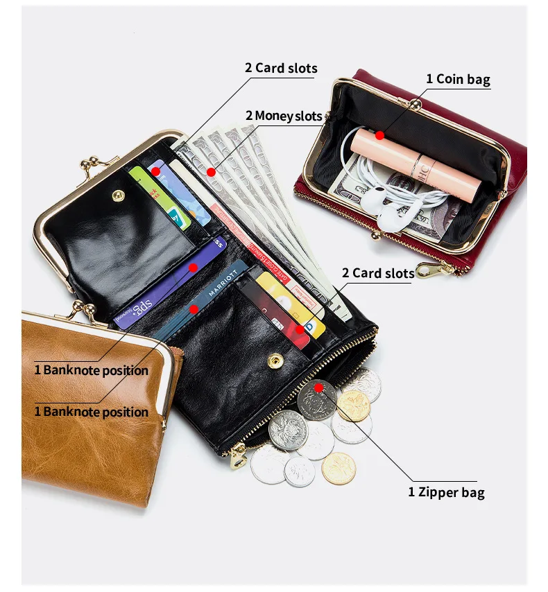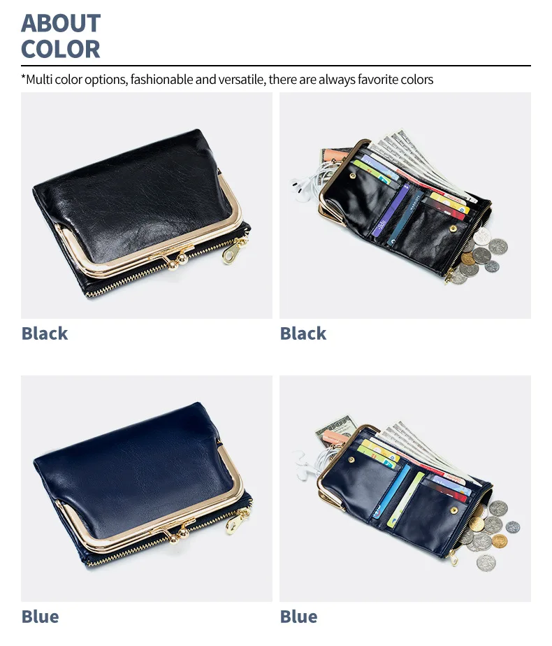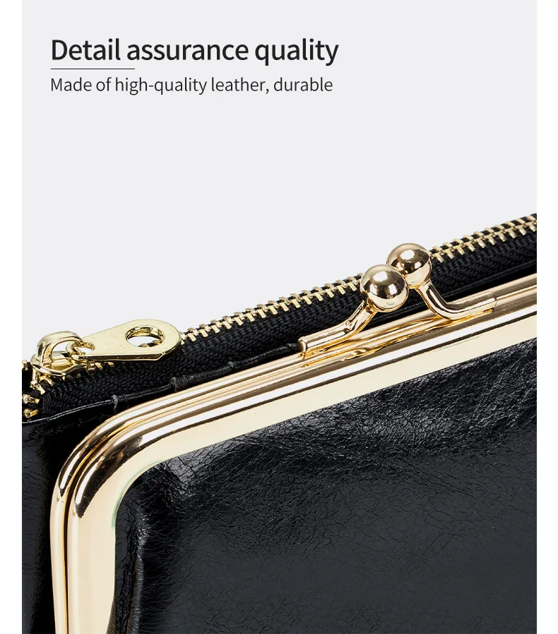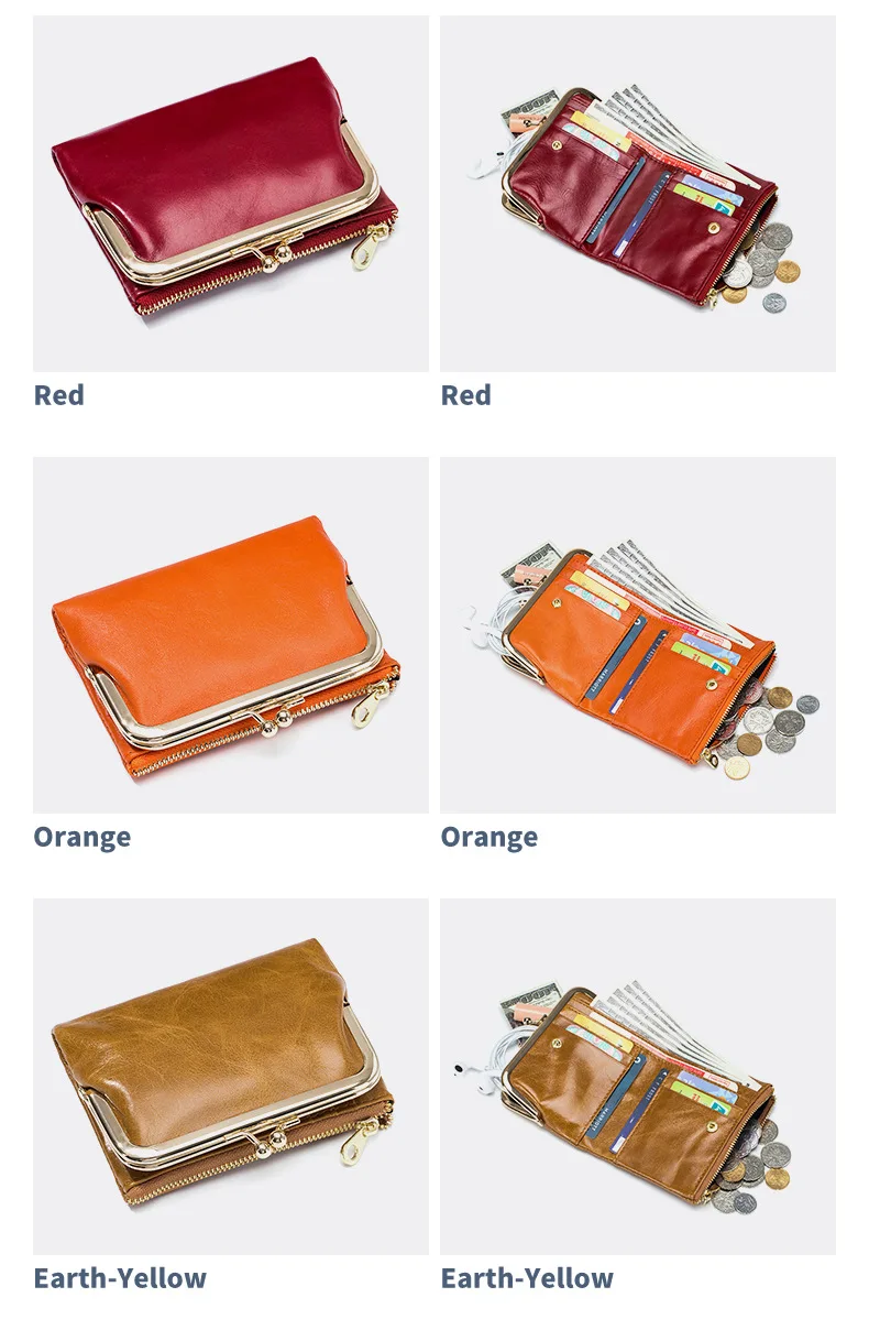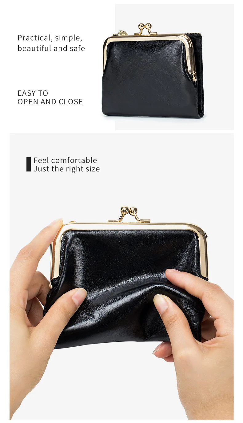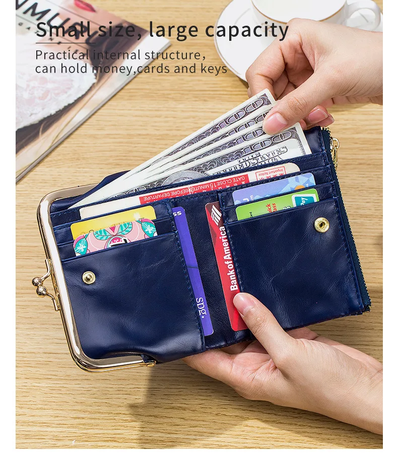 Cowhide Retro Short Wallet Women's Multifunctional Clip Coin Purse