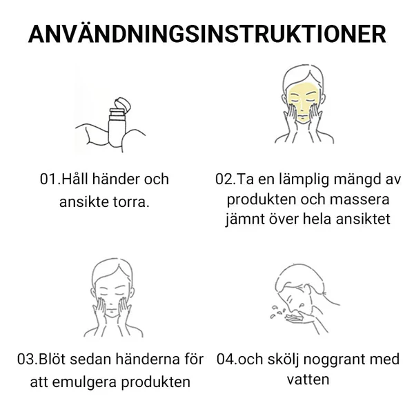 DIRECTIONS FOR USE: Keep hands and face dry. Take an appropriate amount of the product and massage evenly over the entire face. Then wet your hands to emulsify the product and rinse thoroughly with water.
